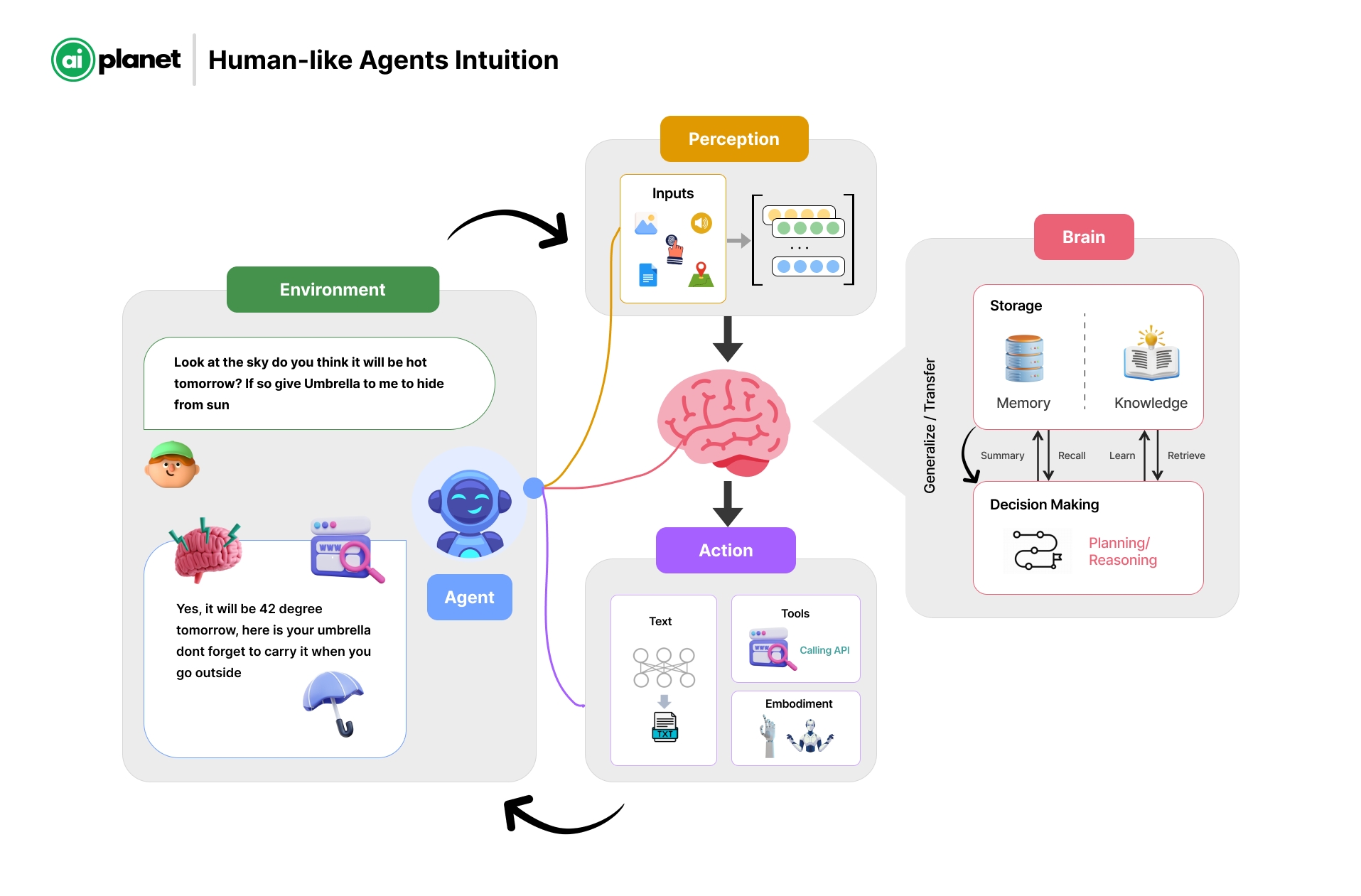 While the advancement of large language models (LLMs) led to numerous applications based on LLMs, at their core, these are adept at synthesizing and gathering information. On the other hand, agents demonstrate more autonomy; they engage in planning, reasoning, decision-making, and executing actions autonomously. The agents are just like humans, which will learn, improve, and become autonomous over time.